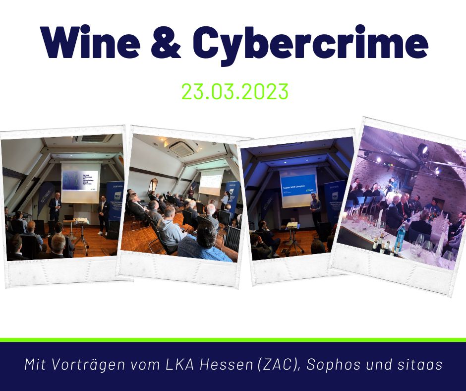 Das Angenehme mit dem Nützlichen verbinden – „Wine & Cybercrime“ zum Feierabend. Am 23.03.2023 durften wir geladene Gäste im Restaurant & Hotel HÖERHOF/Idstein zu einem exklusiven Austausch zur Bedrohungslage Cyberkriminalität bei mittelständischen Unternehmen begrüßen.