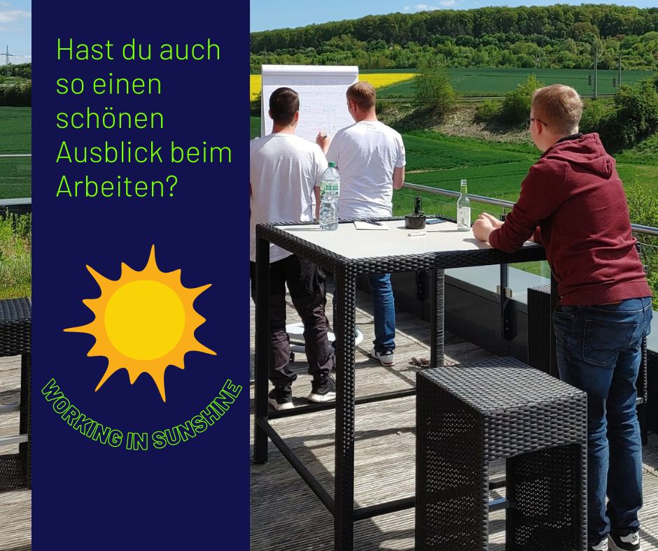 ☀️ Warum im Büro sitzen? Genieße das schöne Wetter und arbeite doch einfach mal auf der Dachterrasse! 🏢🌴